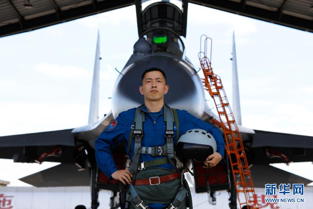 邱麟辉完成某项演练任务后与战机合影(2020年6月15日摄)。新华社发(陈露辉 摄)
