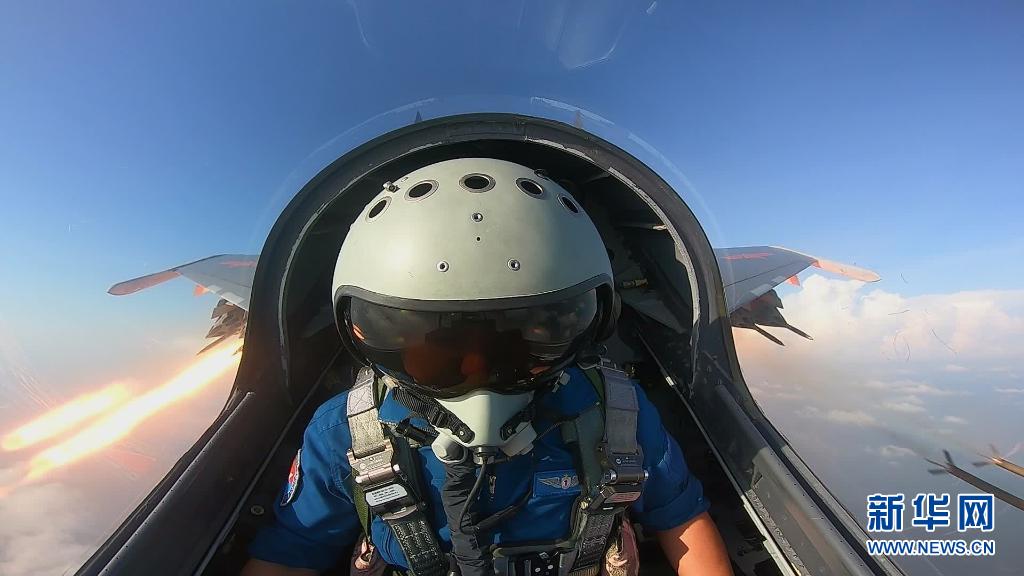 邱麟辉操纵战机实施实弹打击训练(视频截图)。新华社发(刘舜 摄)