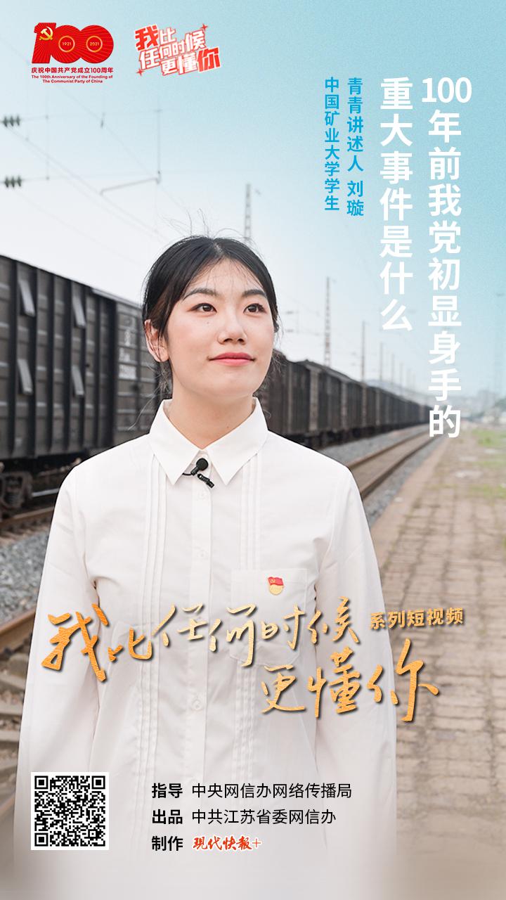 8月10日,"我比任何时候更懂你"系列短视频第17集《100年前我党初显身手的重大事件是什么?》上线,本集青青讲述人是中国矿业大学的硕士研究生刘璇。