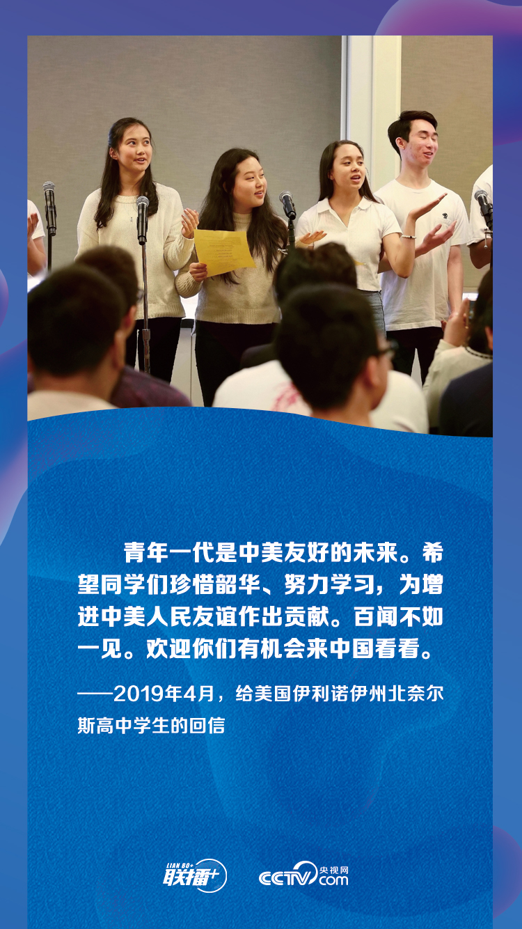 “世界的未来属于年轻一代。全球青年有理想、有担当,人类就有希望,推进人类和平与发展的崇高事业就有源源不断的强大力量。”近年来,习近平主席多次给外国青年回信,鼓励中外青年加强交流互鉴、增进相互理解、发展长久友谊,携手为促进民心相通、推动构建人类命运共同体贡献力量。