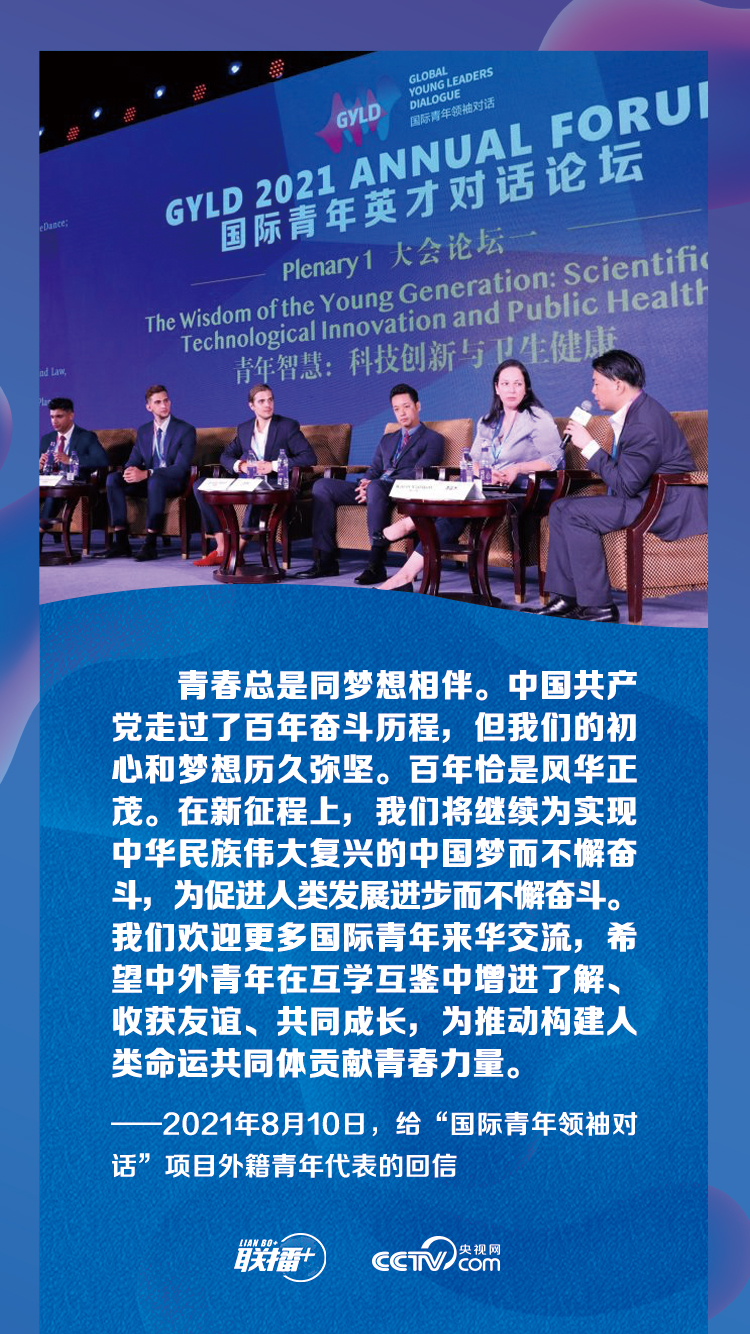 “我们欢迎更多国际青年来华交流,希望中外青年在互学互鉴中增进了解、收获友谊、共同成长,为推动构建人类命运共同体贡献青春力量。”8月10日,中共中央总书记、国家主席习近平给“国际青年领袖对话”项目外籍青年代表回信。