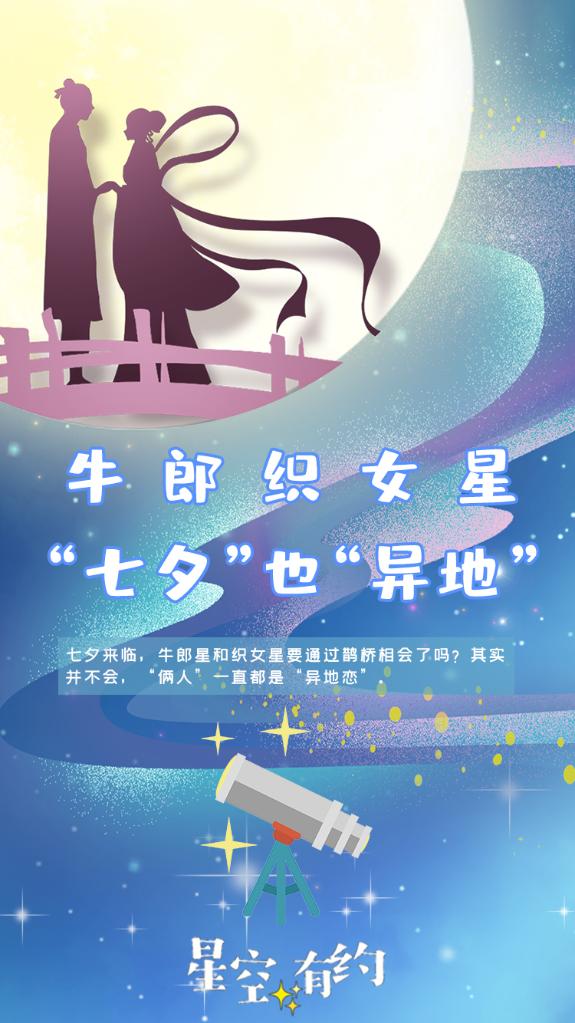 “迢迢牵牛星,皎皎河汉女”。七夕来临,牛郎星和织女星要通过鹊桥相会了吗?“其实并不会,‘俩人’一直都是‘异地恋’。”中科院紫金山天文台科普主管王科超说,牛郎与织女的相会,是古人对于爱情的一种美好憧憬,同时也寄托了古人对茫茫星空的浪漫想象。