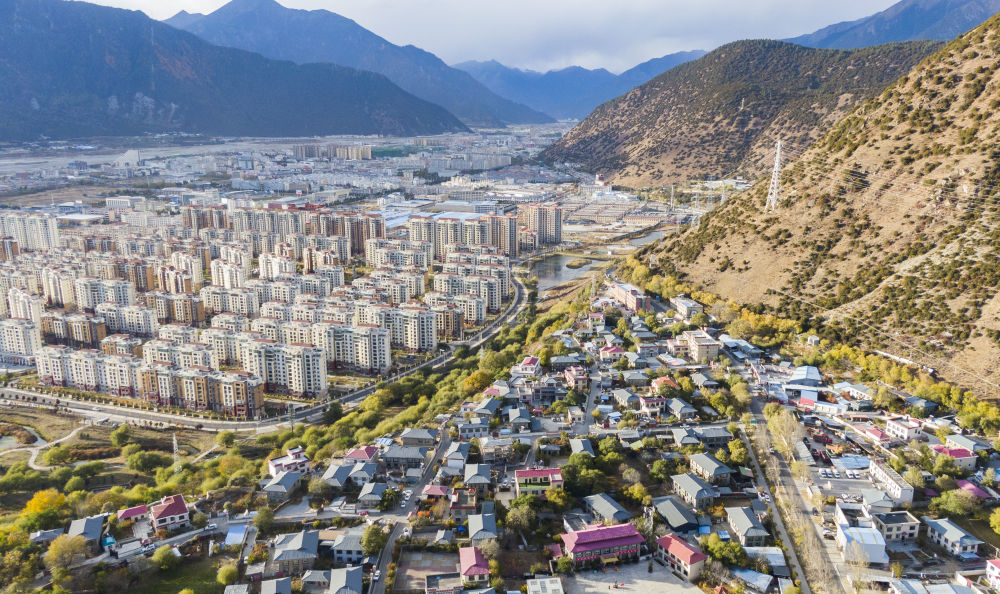 放眼望去,村里一栋栋藏式楼房,在湛蓝天空下、在连绵群山前星罗棋布。嘎拉村的美好生活是西藏和平解放70年来经济社会发展成就的一个缩影。