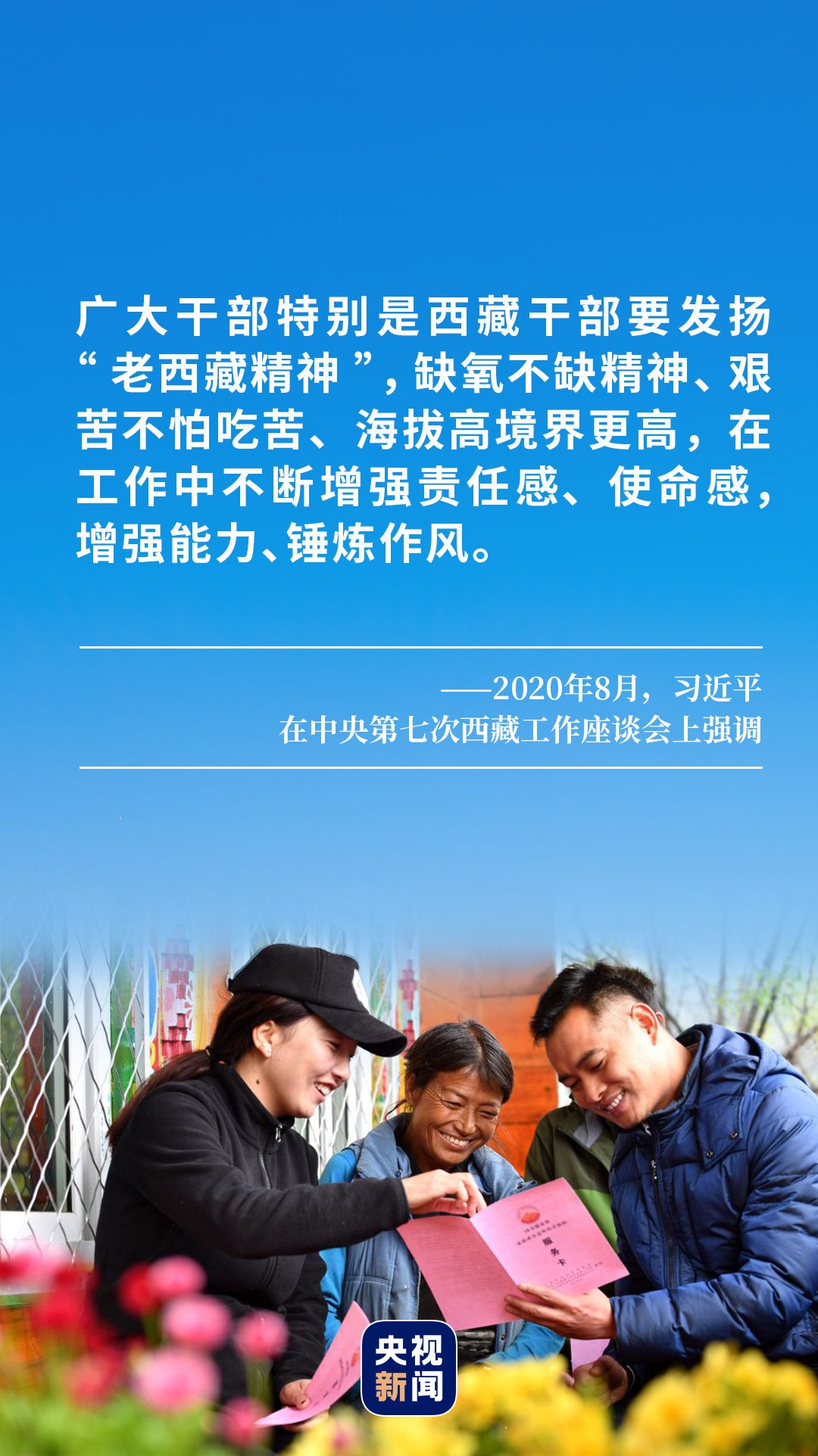 缺氧不缺精神、艰苦不怕吃苦、海拔高境界更高,一代又一代共产党员舍弃常人所拥有的、放弃常人所享受的,扎根雪域高原,矢志艰苦奋斗,不断为“老西藏精神”注入新的时代内涵。