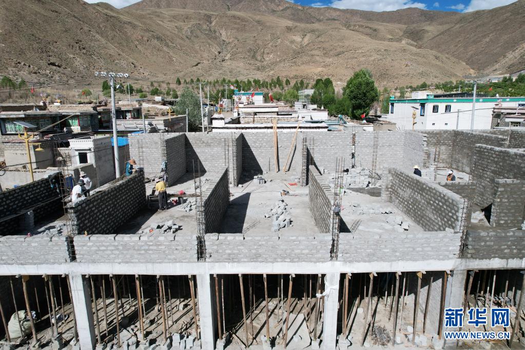 位于西藏山南市乃东区门中岗社区的正在改造施工中的民宿(6月24日摄,无人机照片)。新华社记者 司源 摄