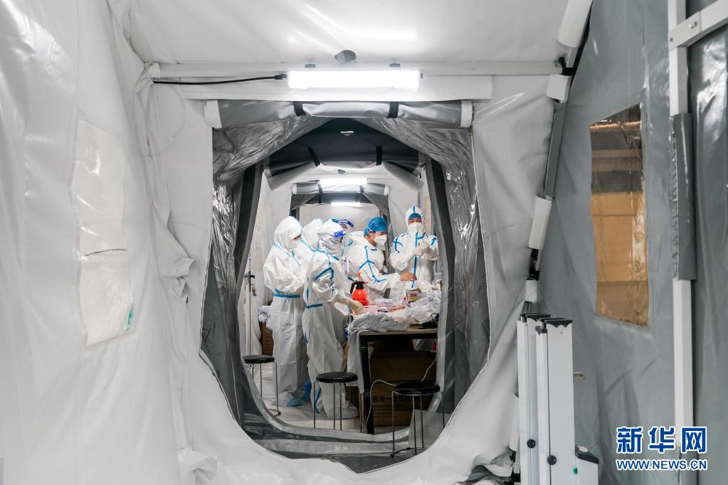 记者走进“猎鹰号”气膜实验室的样品处理区看到,样本、检验仪器、医疗废弃物被分区域整齐摆放,两台全自动加样机正在辅助人工完成一些重复性工序。一旁,经过三级防护的工作人员时而操作设备,时而记录信息,无声地忙碌。