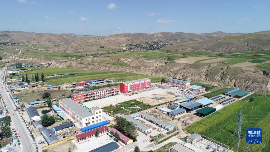 这是宁夏回族自治区固原市西吉县王民乡王民中学(无人机照片,9月2日摄)。新华社记者 王鹏 摄