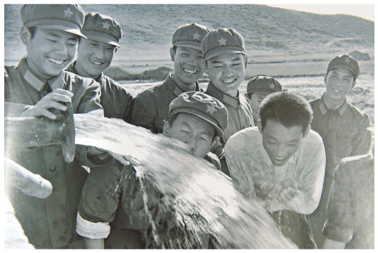据师永讲,找到水源后,战士们还和当地百姓在不远处建起一座“军民友谊水库”,营区也通了自来水,“一盆水再也不用使三回了!”