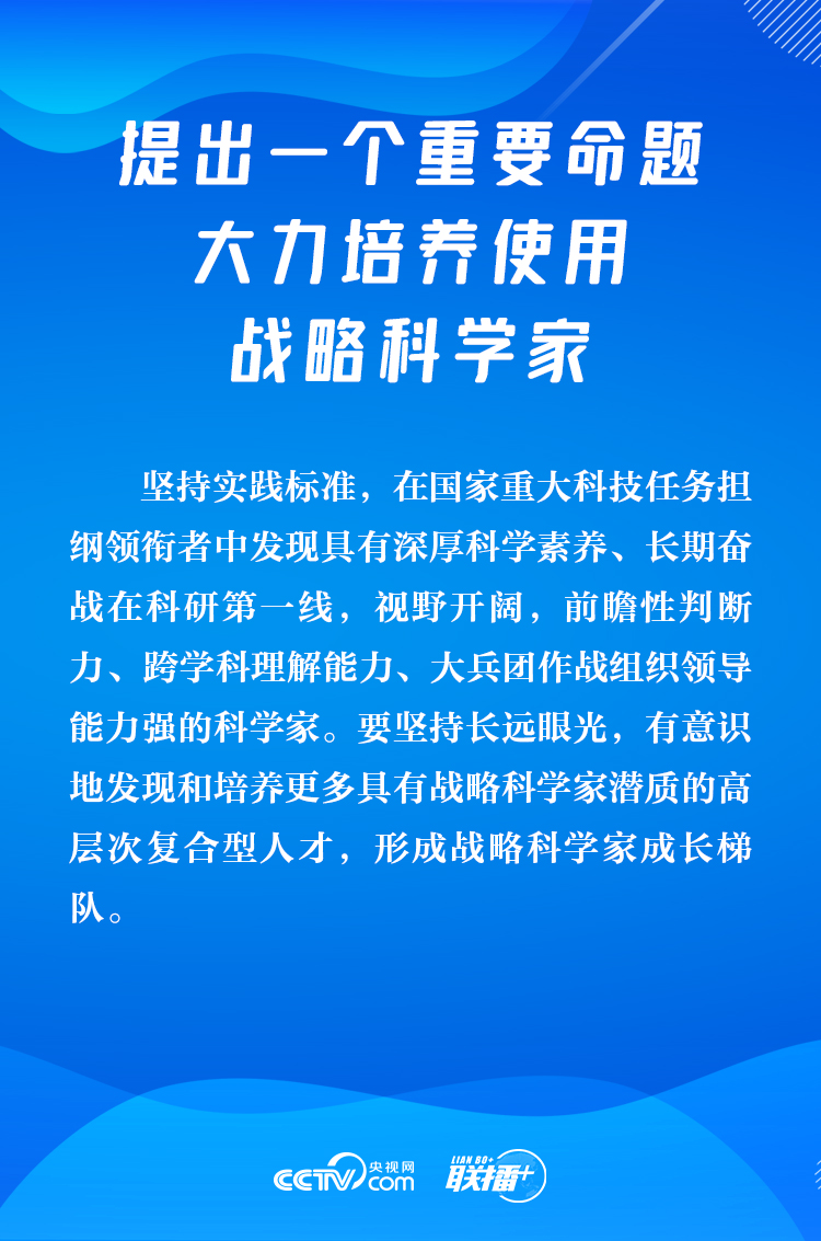 “坚持长远眼光,有意识地发现和培养更多具有战略科学家潜质的高层次复合型人才,形成战略科学家成长梯队。”