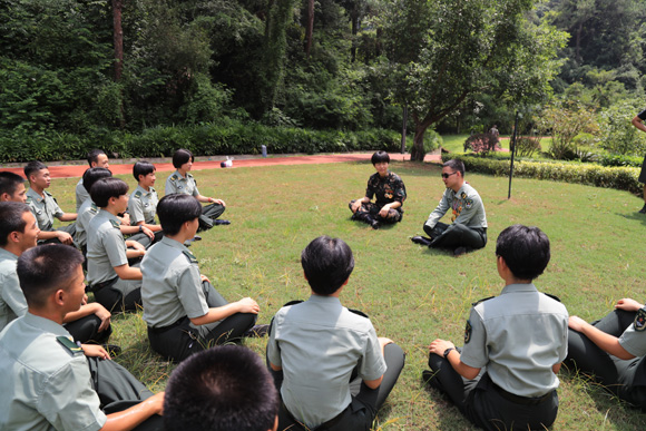 杜富国给战友们讲述排雷故事。(鲁伦 摄)