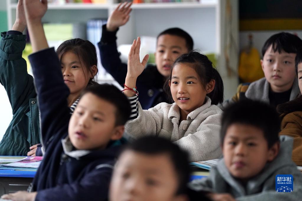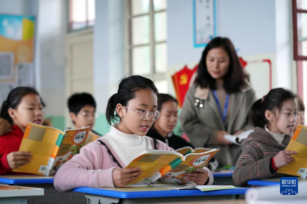在山西省稷山县清河镇吴璧小学安置点,荆平村的孩子跟着老师朗读课文(10月11日摄)。稷峰镇荆平村是稷山县受灾较为严重的一个村。10月7日晚,汾河水漫灌进村,导致村里多处房屋被淹。为了确保村民生命财产安全,荆平村的受灾群众被紧急转移并得到妥善安置。为了不耽误孩子学习,荆平村的100多个孩子被全部安置在吴璧小学安置点,和吴璧小学学生一起上课学习。新华社记者 詹彦 摄