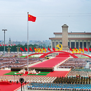 2021年7月1日上午,庆祝中国共产党成立100周年大会在北京天安门广场隆重举行。习近平总书记在大会上庄严宣告,我们实现了全面建成小康社会的第一个百年奋斗目标。图为庆祝大会现场。李舸/摄