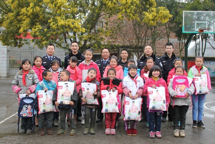 2014年,“宝贝计划”5周年时,长顺县公安局交警大队的民警们带着新买的衣服和书包,来到摆塘乡雷坝小学看望结对帮扶的孩子们,并为他们准备了一份特殊的礼物——“宝贝计划”五周年纪念电子相册。