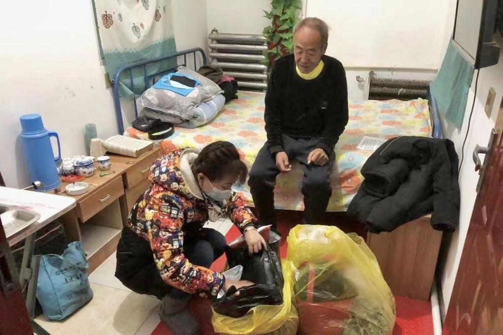 12月10日,在哈尔滨市香坊区安乐街道办事处,王涛为社区工作人员准备盒饭。新华社记者 张涛 摄