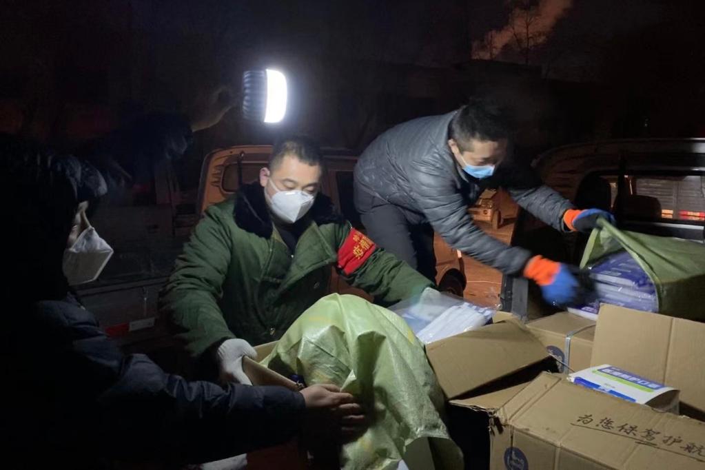 哈平路街道办事处工作人员在领取防疫物资。受访者供图