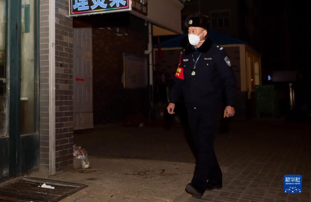 12月7日,在满洲里市满城新世界小区B区,民警王满在执勤。新华社记者 李志鹏 摄