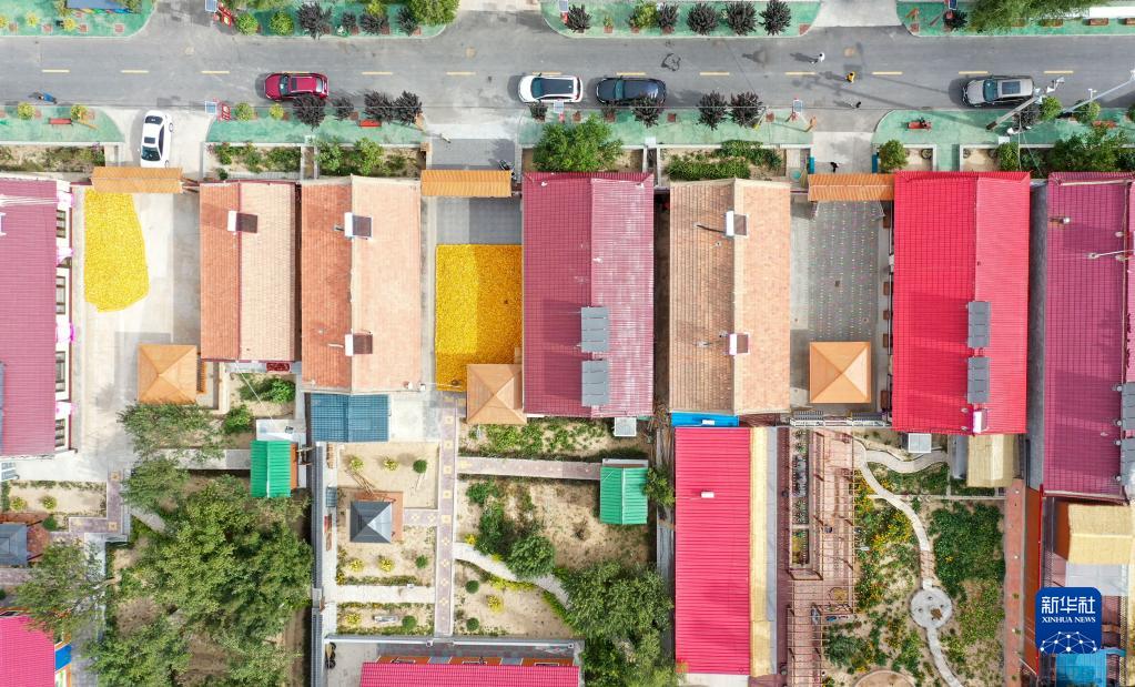 这是10月3日拍摄的宁夏吴忠市红寺堡区柳泉乡永新村的“共享庭院”(无人机照片)。新华社记者 冯开华 摄