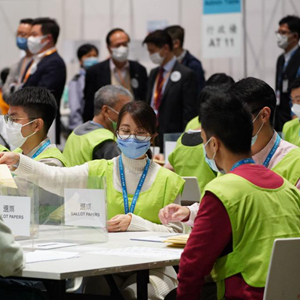 12月19日,香港顺利举行完善选举制度后首次立法会选举投票,工作人员点票现场。新华社记者 吕小炜 摄