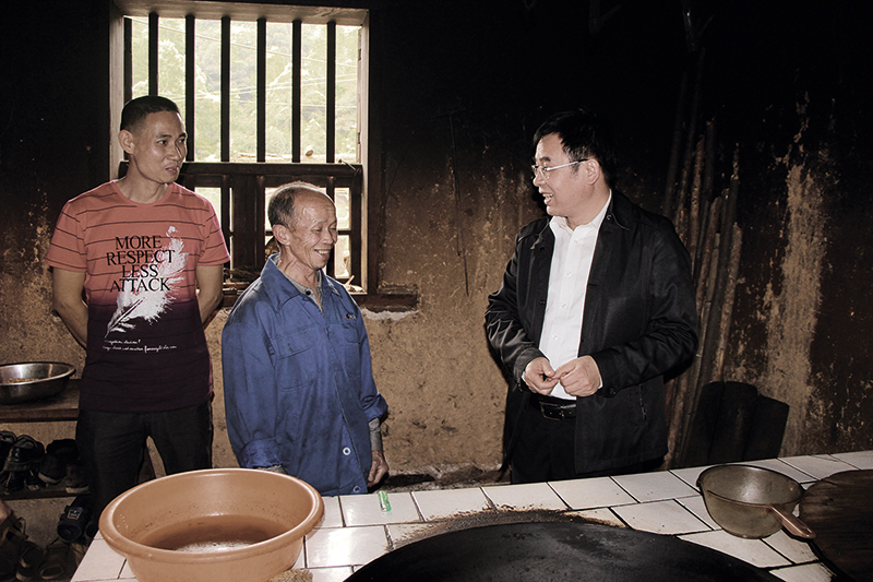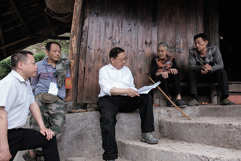 2019年4月20日,蒙汉(左三)在湖南省怀化市溆浦县大江口镇白岩头村贫困户家中检查扶贫政策落实情况焦裕禄精神的新时代回响 摄影/本刊