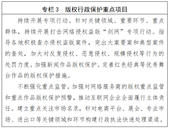 (二)进一步完善版权行政保护体系