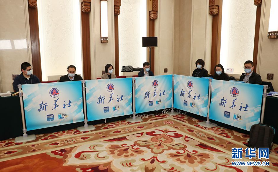 3月3日,全国政协十三届四次会议召开新闻发布会。大会新闻发言人郭卫民向中外媒体介绍本次大会有关情况并回答记者提问。图为本网记者在新闻发布会现场做直播准备工作。新华网记者 王翰林 摄