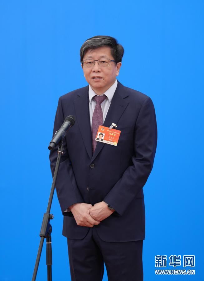 3月4日,全国政协十三届四次会议第一场“委员通道”采访活动在北京人民大会堂新闻发布厅举行。这是全国政协委员包为民通过网络视频方式接受媒体采访。新华社记者 李贺 摄