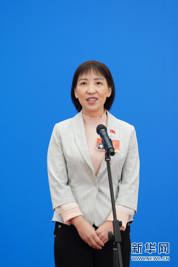 3月5日,第十三届全国人民代表大会第四次会议举行首场“代表通道”采访活动。这是全国人大代表查艳通过网络视频方式接受采访。新华社记者 才扬 摄