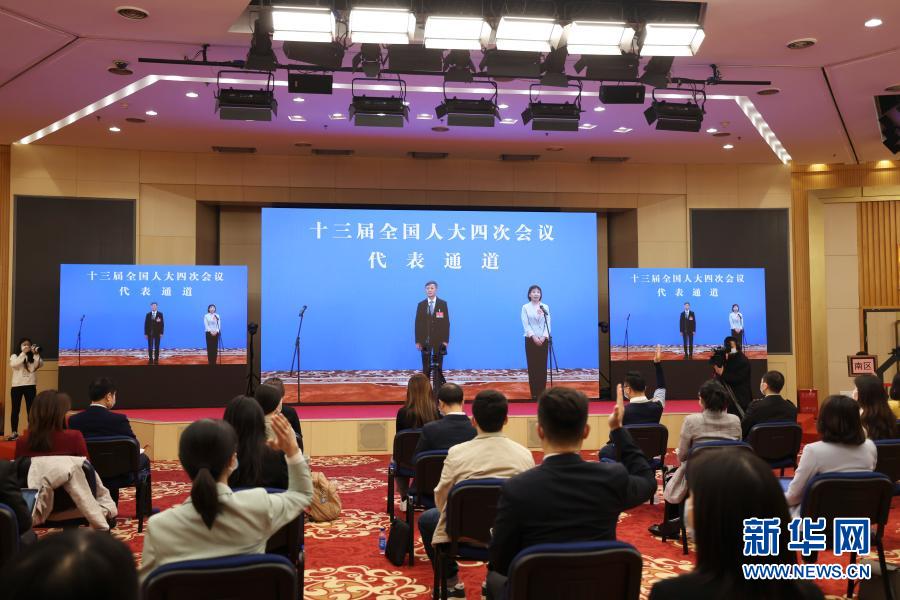3月5日,第十三届全国人民代表大会第四次会议举行首场“代表通道”采访活动。这是记者在分会场通过网络视频方式采访。新华社记者 曹灿 摄