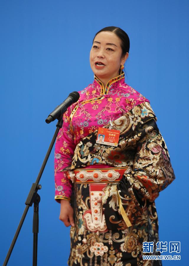 3月5日,第十三届全国人民代表大会第四次会议举行首场“代表通道”采访活动。这是全国人大代表孔庆菊通过网络视频方式接受采访。新华社记者 金立旺 摄