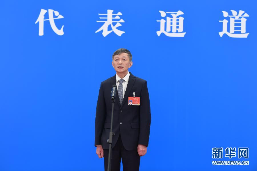 3月5日,第十三届全国人民代表大会第四次会议举行首场“代表通道”采访活动。这是全国人大代表苏伯民通过网络视频方式接受采访。新华社记者 金良快 摄