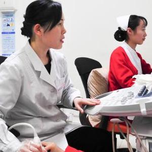 左图:山东省聊城市东昌府区妇幼保健院医生在给孕妇做检查(2019年2月4日摄)。新华社发(许文豪 摄)