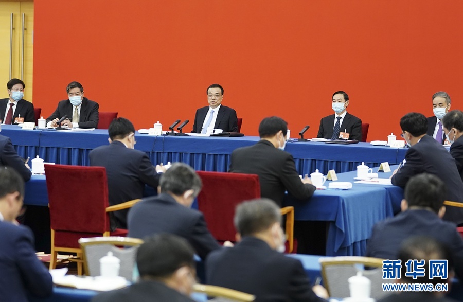 3月6日,中共中央政治局常委、国务院总理李克强看望出席全国政协十三届四次会议的经济界委员并参加讨论。新华社记者 燕雁 摄