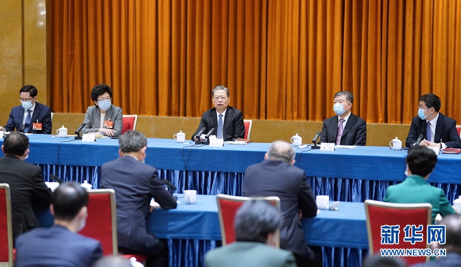 3月6日,中共中央政治局常委、中央纪委书记赵乐际看望出席全国政协十三届四次会议的农工党、体育界委员并参加讨论。新华社记者 张领 摄