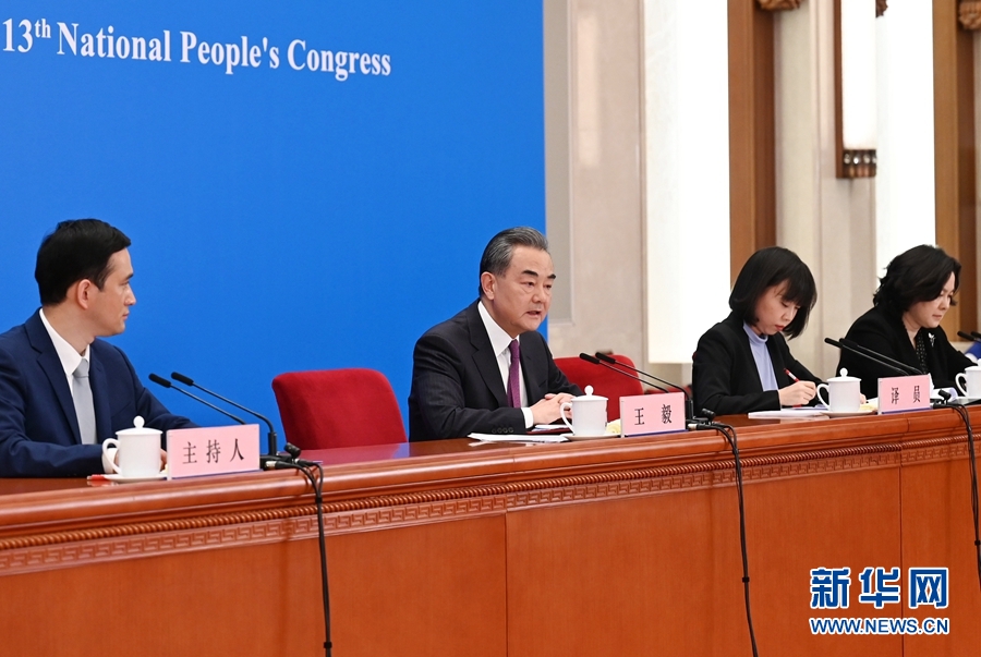 3月7日,十三届全国人大四次会议在北京人民大会堂新闻发布厅举行记者会,邀请国务委员兼外交部长王毅就“中国外交政策和对外关系”相关问题回答中外记者提问。为有效防控疫情,共同维护公共卫生与健康,记者会采用网络视频形式进行。 新华社记者 陈晔华 摄
