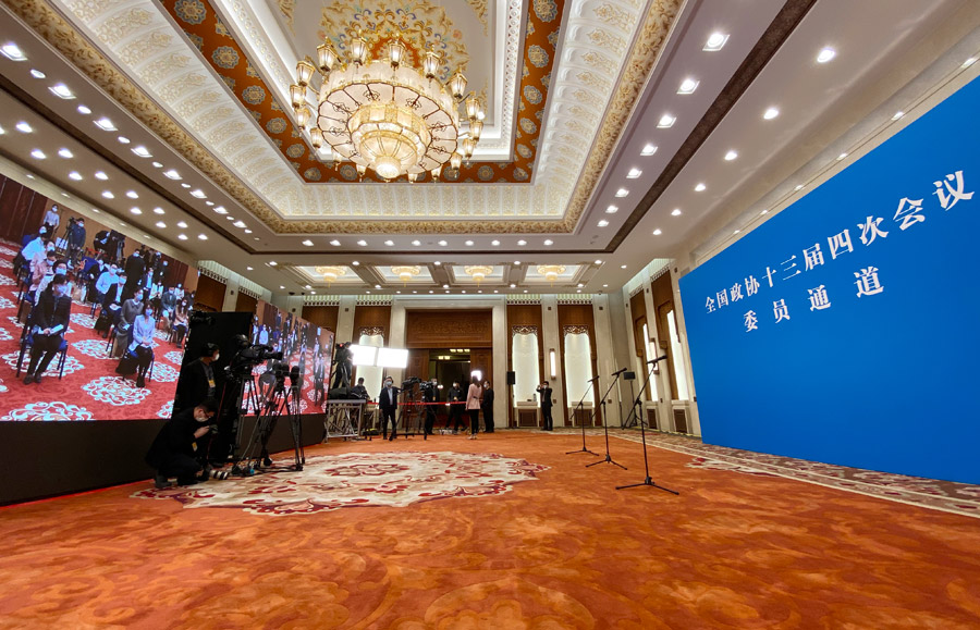 3月7日,全国政协十三届四次会议第二次全体会议在人民大会堂举行。图为“委员通道”现场。新华网 王翰林 摄