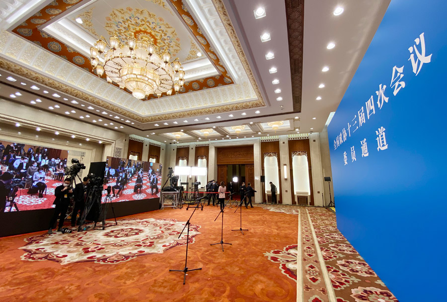 3月7日,全国政协十三届四次会议第二次全体会议在人民大会堂举行。图为“委员通道”现场。新华网 王翰林 摄