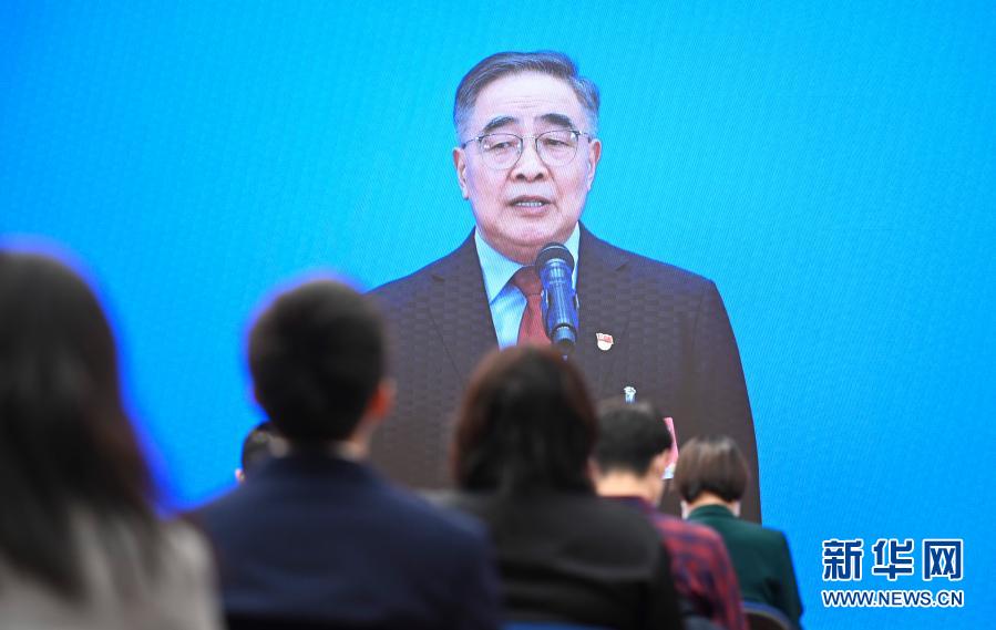 3月8日,第十三届全国人民代表大会第四次会议举行第二场“代表通道”采访活动。这是记者在分会场通过网络视频方式采访全国人大代表张伯礼。新华社记者 陈晔华 摄