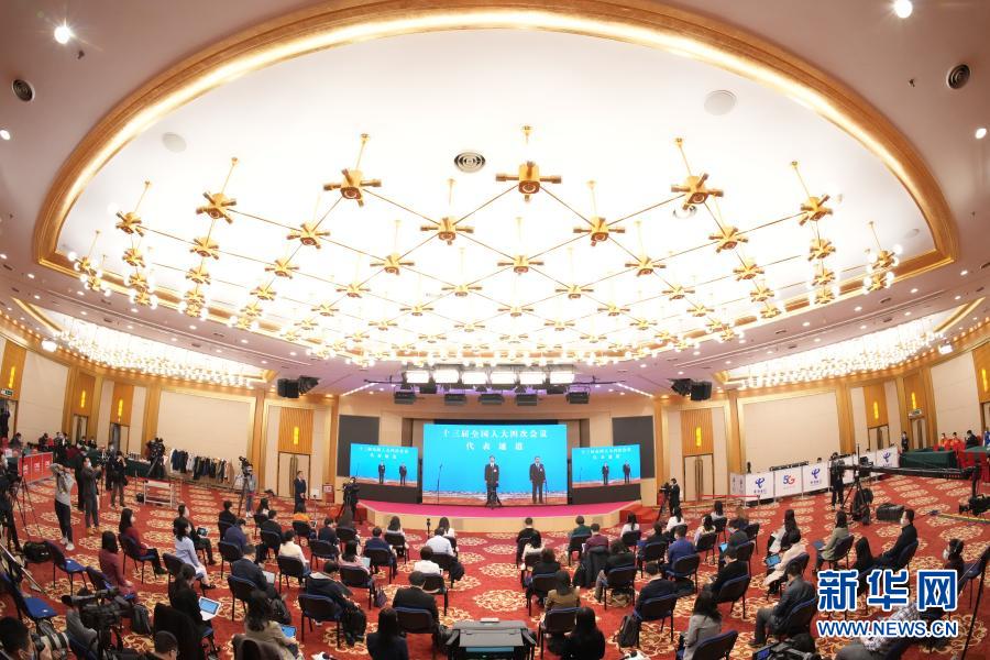 3月8日,第十三届全国人民代表大会第四次会议举行第二场“代表通道”采访活动。这是记者在分会场通过网络视频方式采访。新华社记者 陈晔华 摄