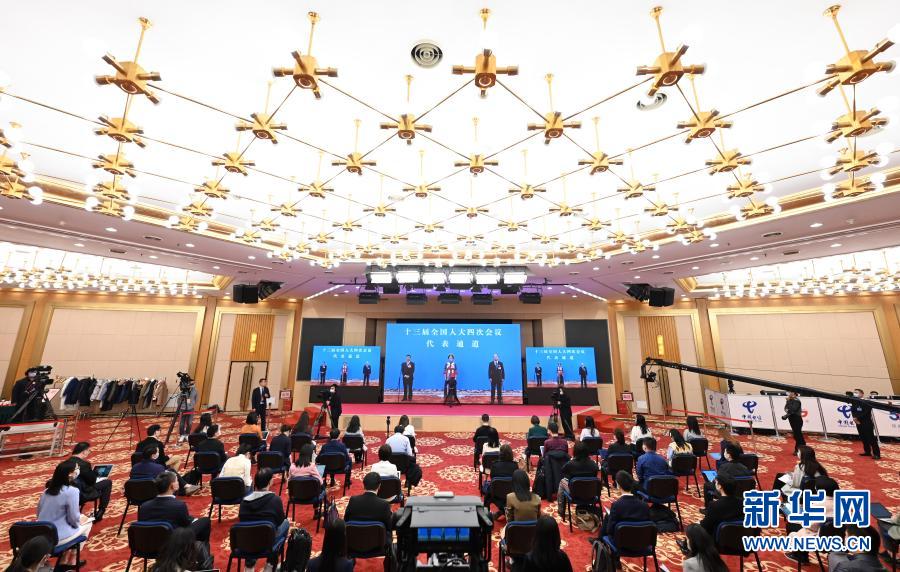 3月8日,第十三届全国人民代表大会第四次会议举行第二场“代表通道”采访活动。这是记者在分会场通过网络视频方式采访。