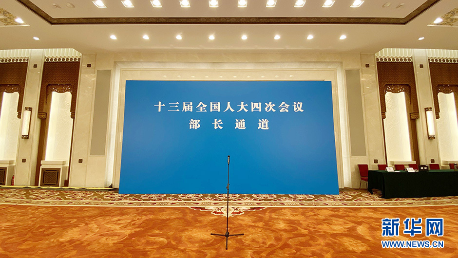 3月8日,十三届全国人大四次会议在北京人民大会堂举行第二次全体会议。 图为“部长通道”现场。新华网 王翰林 摄