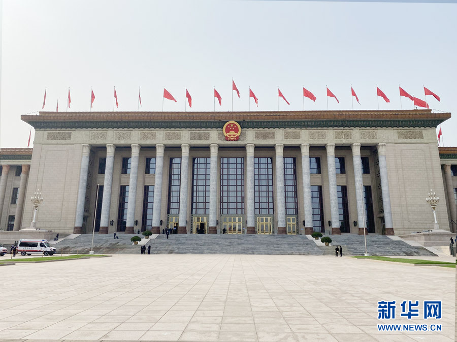 3月8日下午,第十三届全国人民代表大会第四次会议在人民大会堂举行第二次全体会议。图为人民大会堂外景。新华网 王翰林 摄
