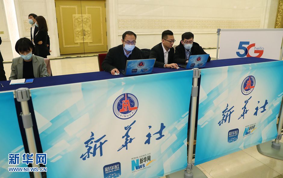 3月11日下午十三届全国人大四次会议闭幕后,国务院总理李克强在人民大会堂三楼金色大厅出席记者会并回答中外记者提问。图为新华网现场直播团队。 新华网 王翰林 摄