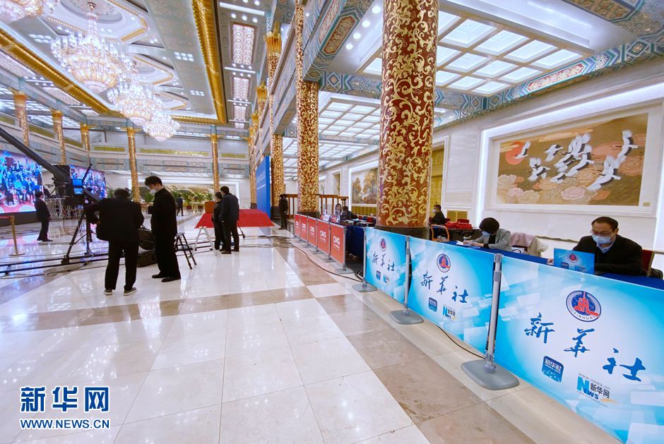 3月11日下午十三届全国人大四次会议闭幕后,国务院总理李克强在人民大会堂三楼金色大厅出席记者会并回答中外记者提问。图为新华网现场直播团队。 新华网 王翰林 摄