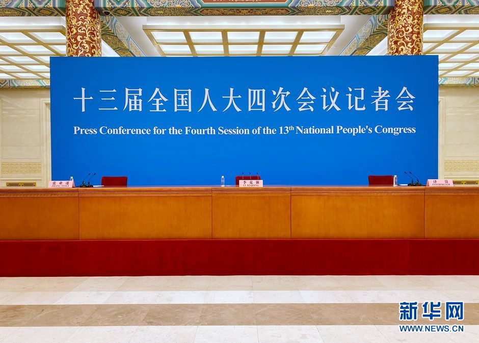 3月11日下午十三届全国人大四次会议闭幕后,国务院总理李克强在人民大会堂三楼金色大厅出席记者会并回答中外记者提问。新华网进行现场直播。图为人民大会堂三楼金色大厅。 新华网 王翰林 摄