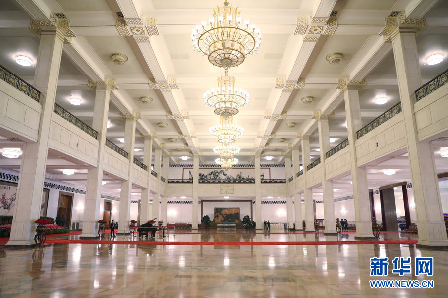 3月11日16时,国务院总理李克强将在人民大会堂三楼金色大厅出席记者会并回答中外记者提问。图为人民大会堂内景。新华网 王翰林 摄