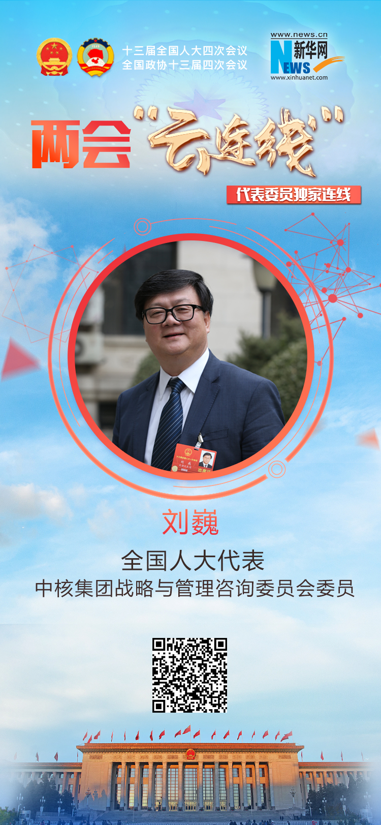 2021年全国两会期间,全国人大代表、中核集团战略与管理咨询委员会委员刘巍就核电未来发展接受新华网采访。
