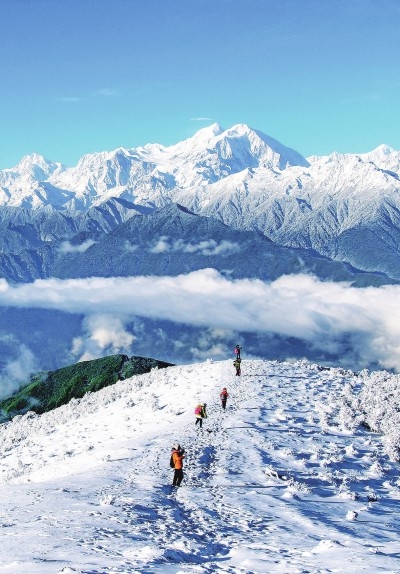 大熊猫国家公园内的二郎山红岩顶与贡嘎雪山 蒋红阳摄/星球研究所/光明图片