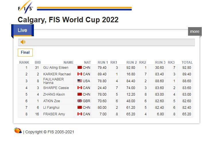 在U型场地技巧、坡面障碍技巧、大跳台项目中