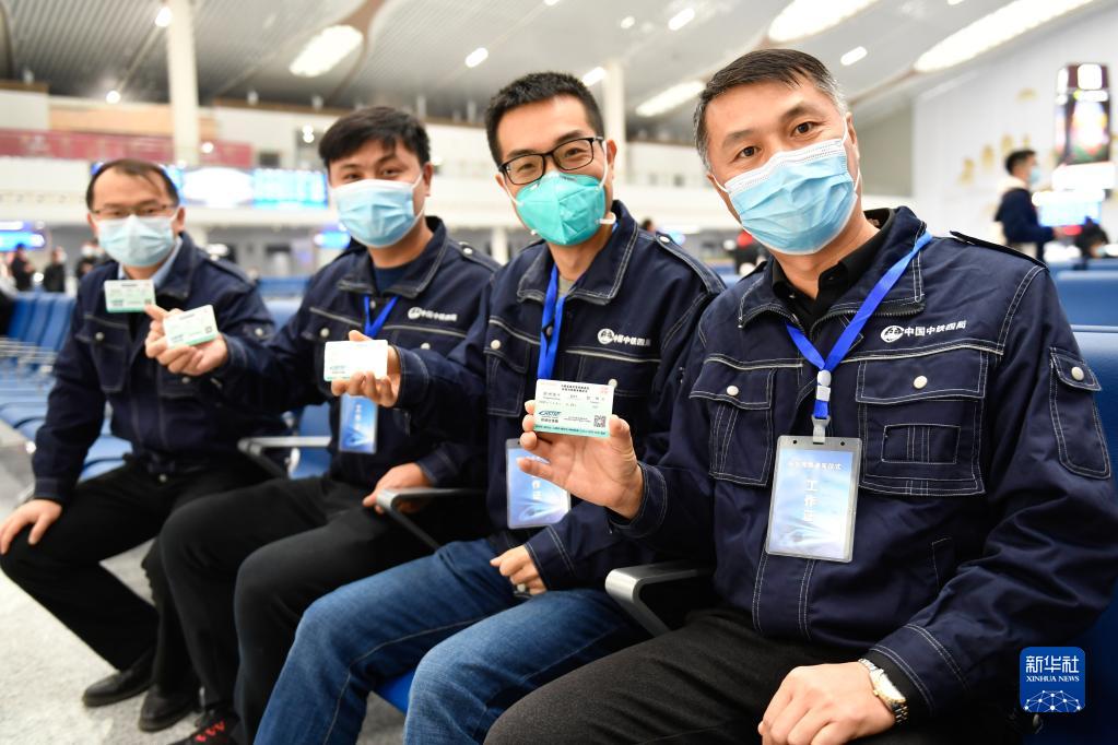 1月8日,乘坐杭台高铁首发列车的建设者代表在台州站站台留影。新华社记者 黄宗治 摄