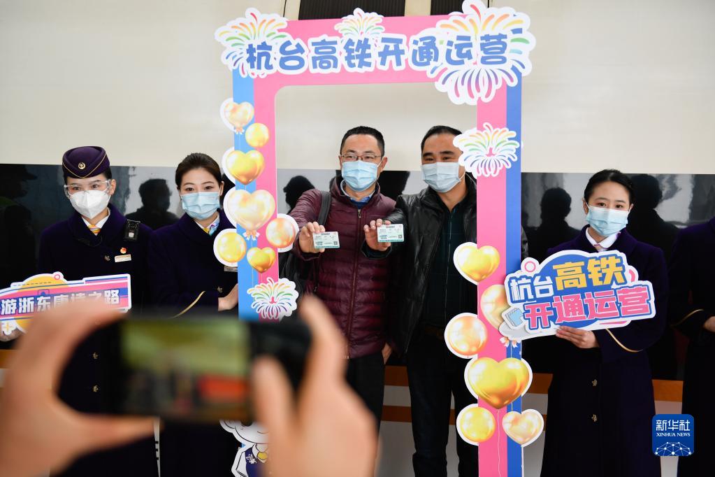 “乘坐杭台高铁,将‘读万卷书’和‘行万里路’巧妙地结合了起来。”乘坐首发列车的旅客王倩倩说,等孩子放寒假了,准备带他来乘坐杭台高铁,亲身感受唐诗中的山水风光。